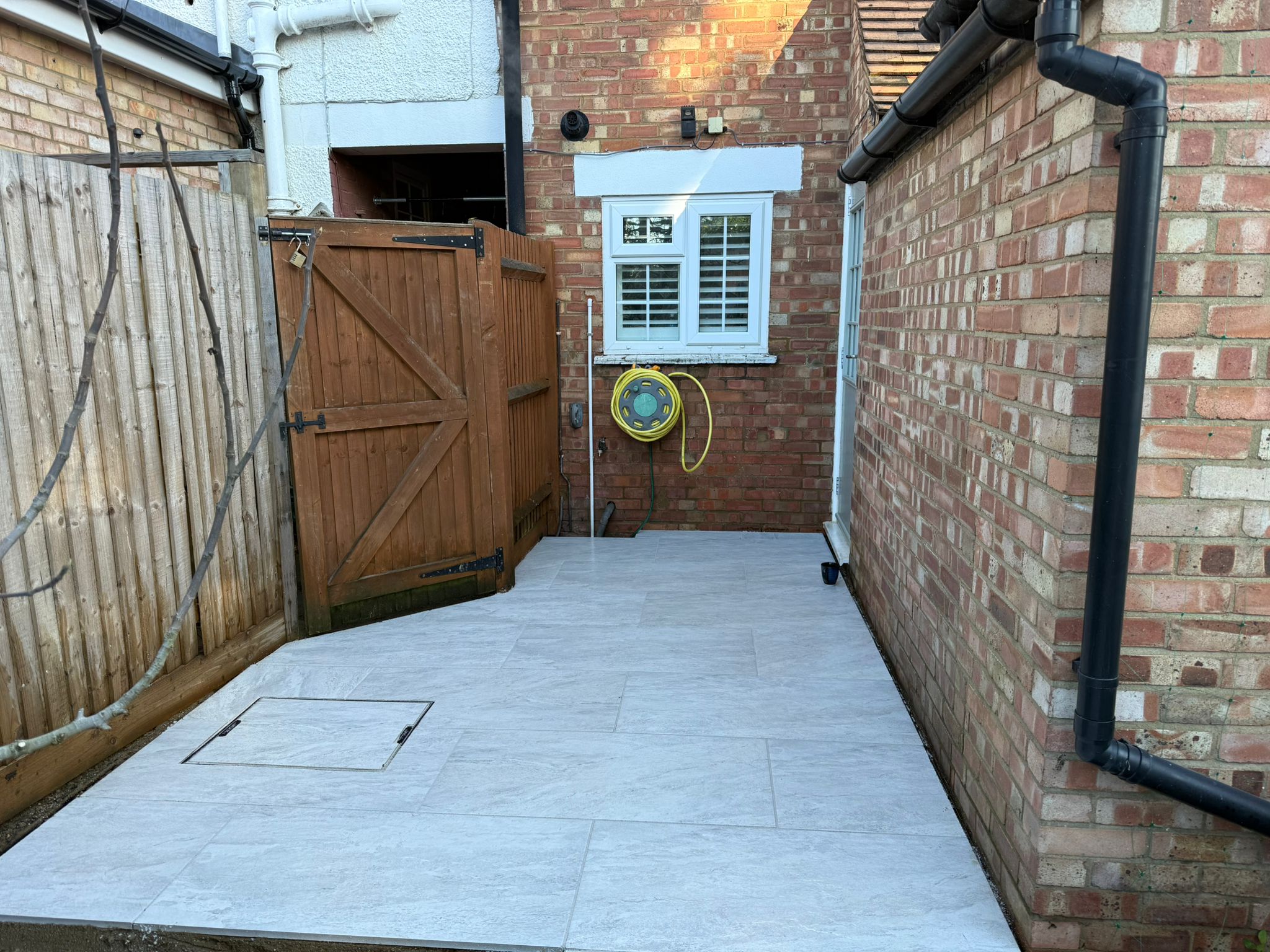 We recently transformed a garden in St Albans by replacing an old, worn patio with a beautiful new porcelain patio and garden pathway. The modern paving instantly lifted the outdoor space, creating a clean, elegant, and low-maintenance area perfect for everyday use and entertaining.